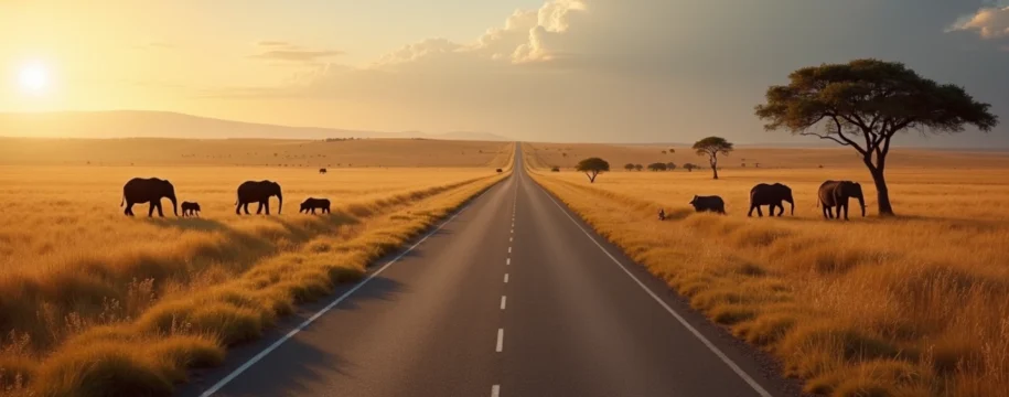 Le trajet vers Tsavo vous fera traverser des paysages variés, des collines boisées aux plaines semi-arides. La route, bien que généralement en bon état, peut être cahoteuse par endroits, ajoutant à l’aventure du voyage.